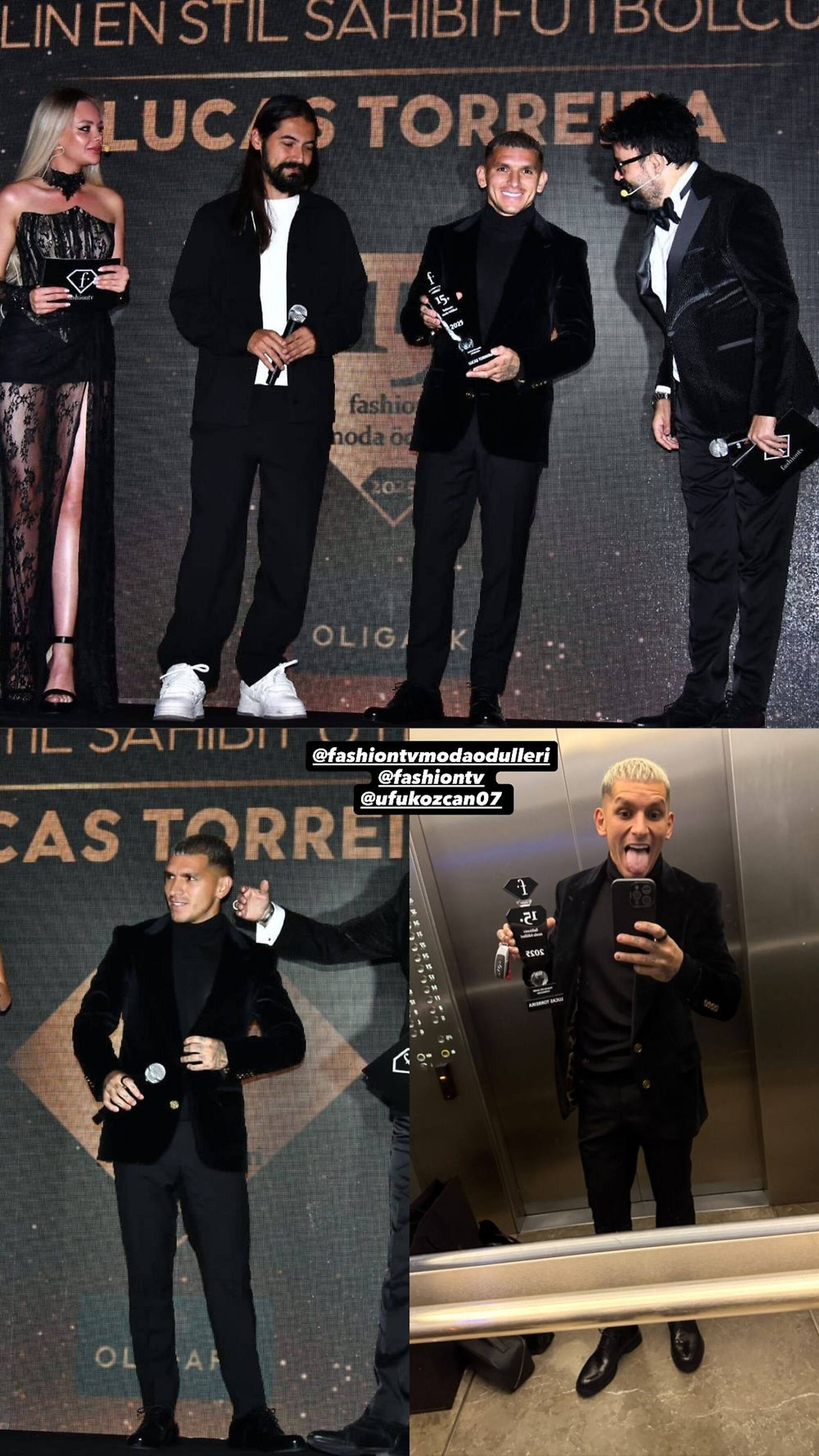 Así se lo pudo ver en sus redes con el trofeo y en el escenario de la gala.