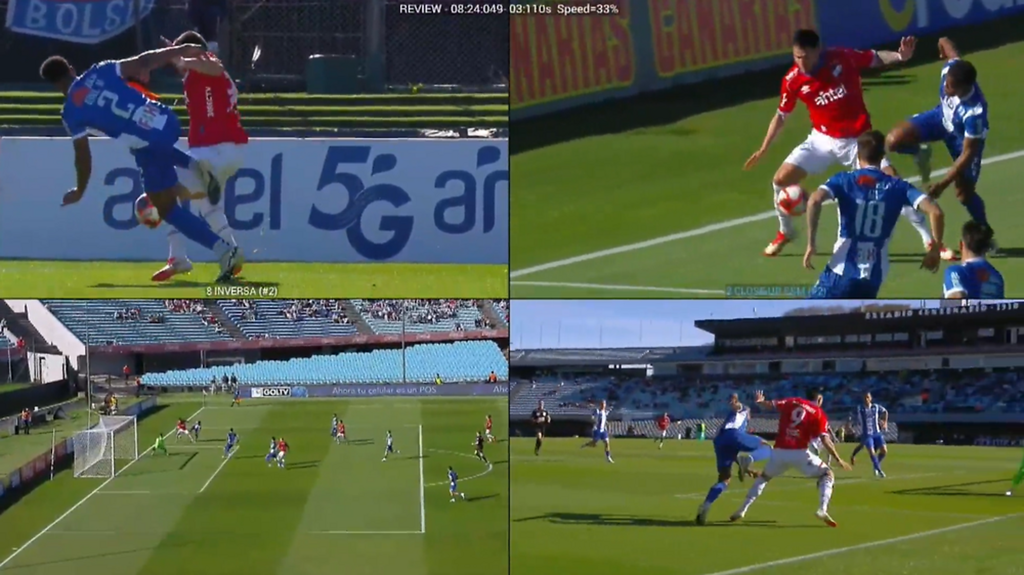 El audio del VAR explica que “el jugador del equipo azul y blanco se sujeta con el jugador rojo en procura de un espacio dentro del área penal del primero”