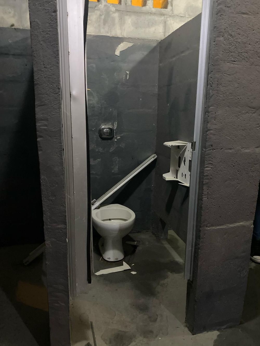 En los baños del sector visitante hubo destrozos de puertas y sanitarios.