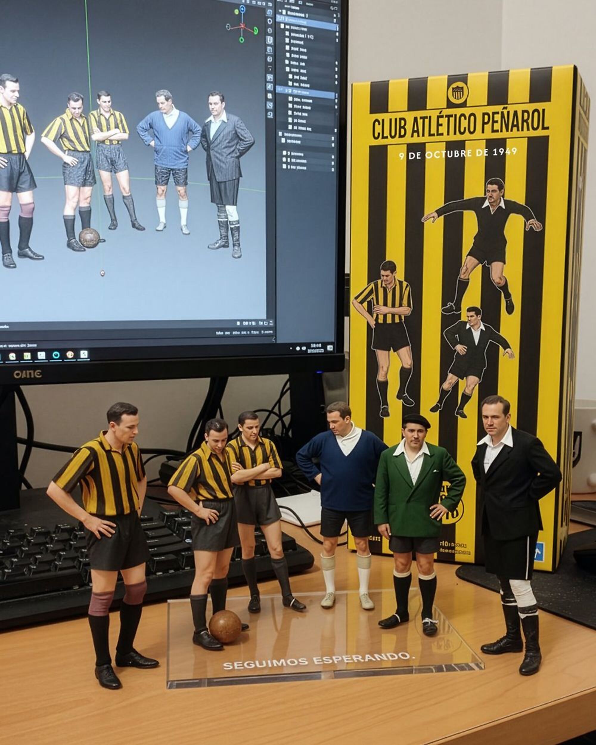 "Seguimos esperando…", expresaron los aurinegros en un segundo posteo, acompañado con una foto de época, coloreada, con tres jugadores de Peñarol y el juez Horacio Bochetti con sus asistentes, esperando por el retorno a Nacional a la disputa del segundo tiempo, algo que no aconteció.