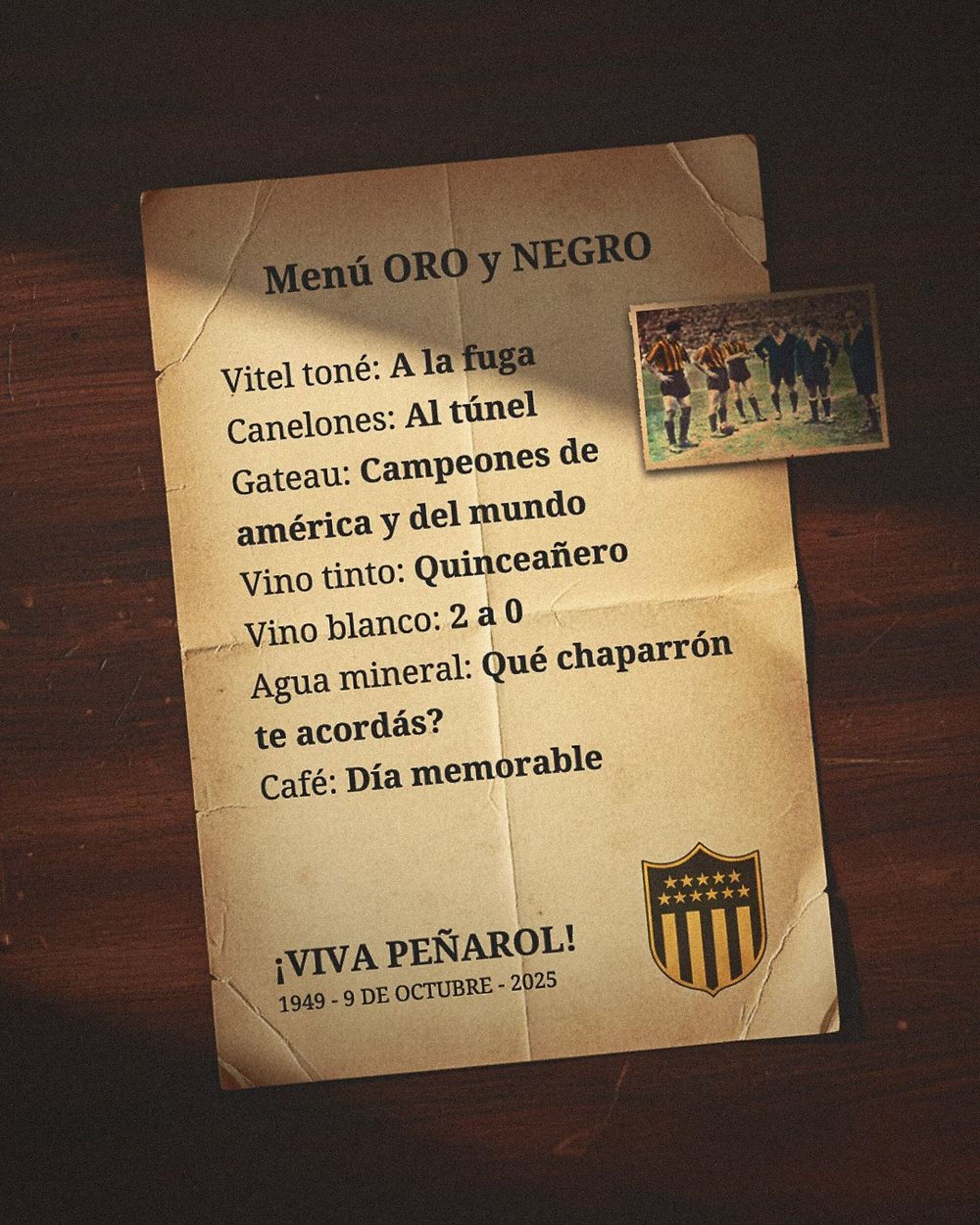 En un cuarto posteo, Peñarol elaboró una carta con un menú en el que siguió ironizando sobre el recordado clásico.