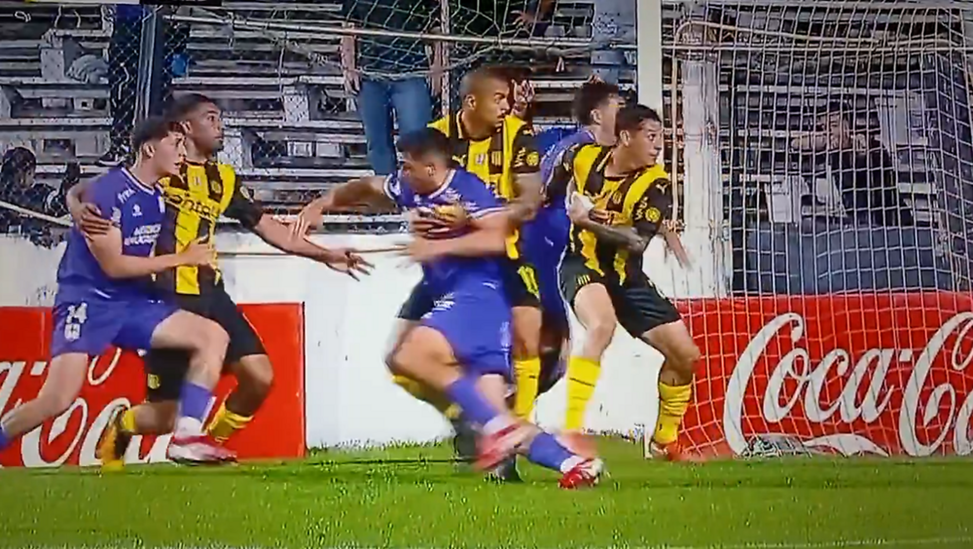 Al minuto 15 del primer tiempo, con el partido aún 0-0, Defensor reclamó un penal contra el zaguero Juan Viacava en un córner.